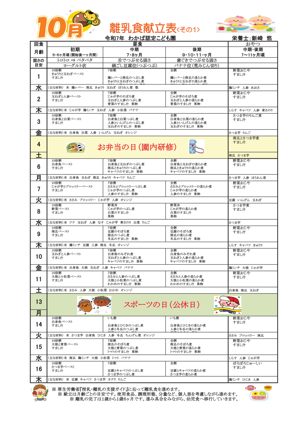 10月献立表