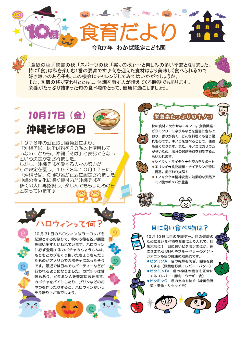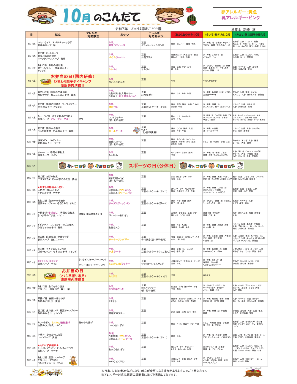 10月の献立表です。